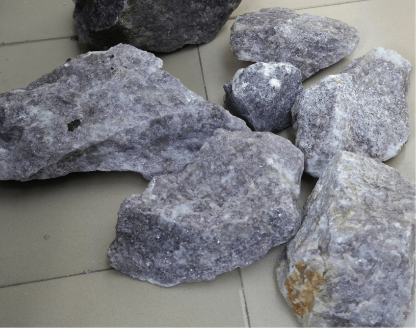 通常、根源岩(リチア輝石ペグマタイト) は輸送目的でリチア輝石濃縮物にアップグレードされます。しかし、自然の粗い状態で輸送することもできます。この状態は、大きな丸石や巨石で構成され、場合によってはパレタイズの形で、外観が骨材に似ています。